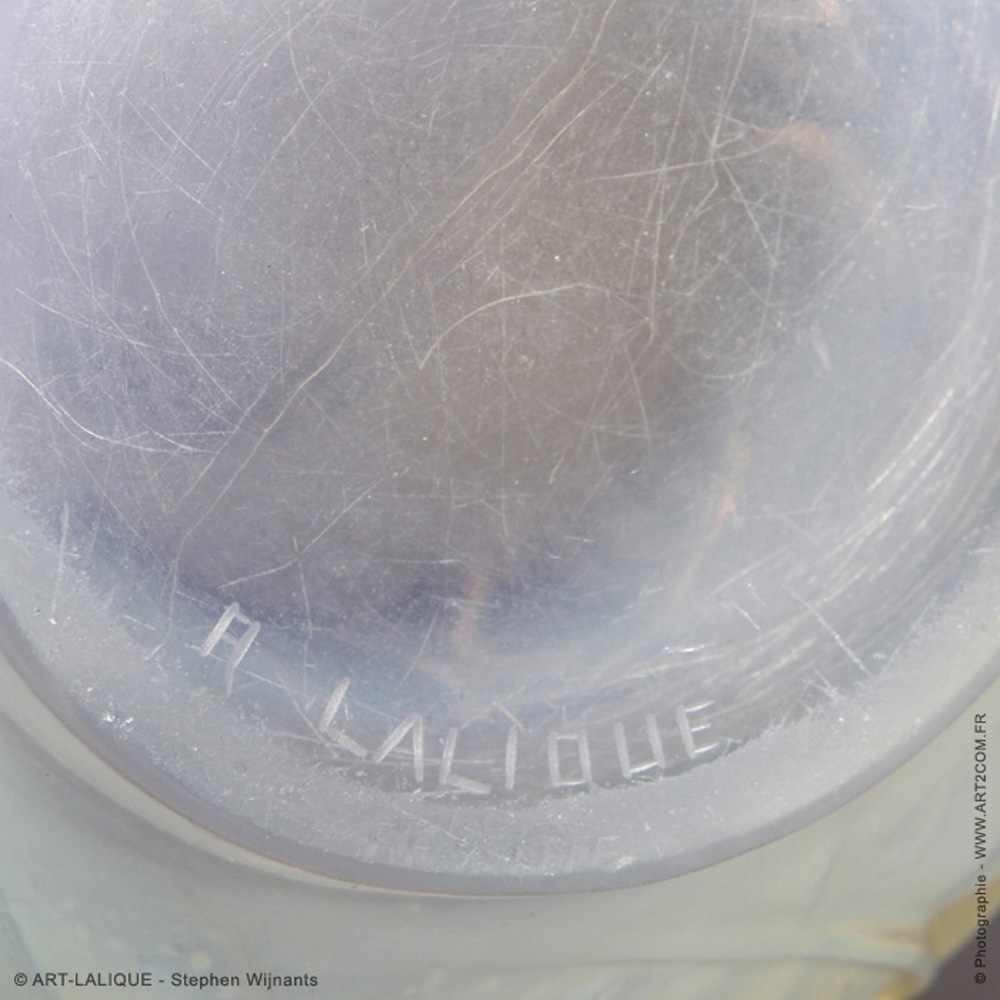 Verre opalescent. Référence : Félix Marcilhac, catalogue raisonné de l'oeuvre de verre de R.Lalique, éd. de l'Amateur Paris, 1994, p. 447.