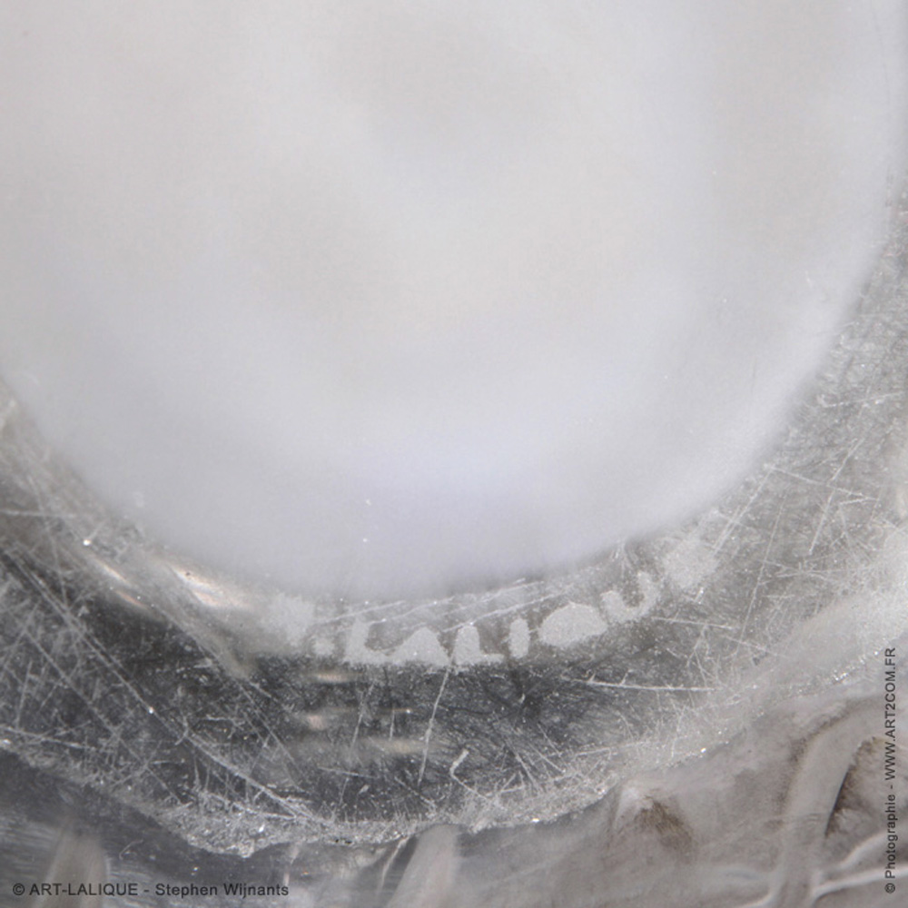 Verre blanc - Patine grise. Référence : Félix Marcilhac, catalogue raisonné de l'oeuvre de verre de R.Lalique, éd. de l'Amateur Paris, 1994, p. 444
