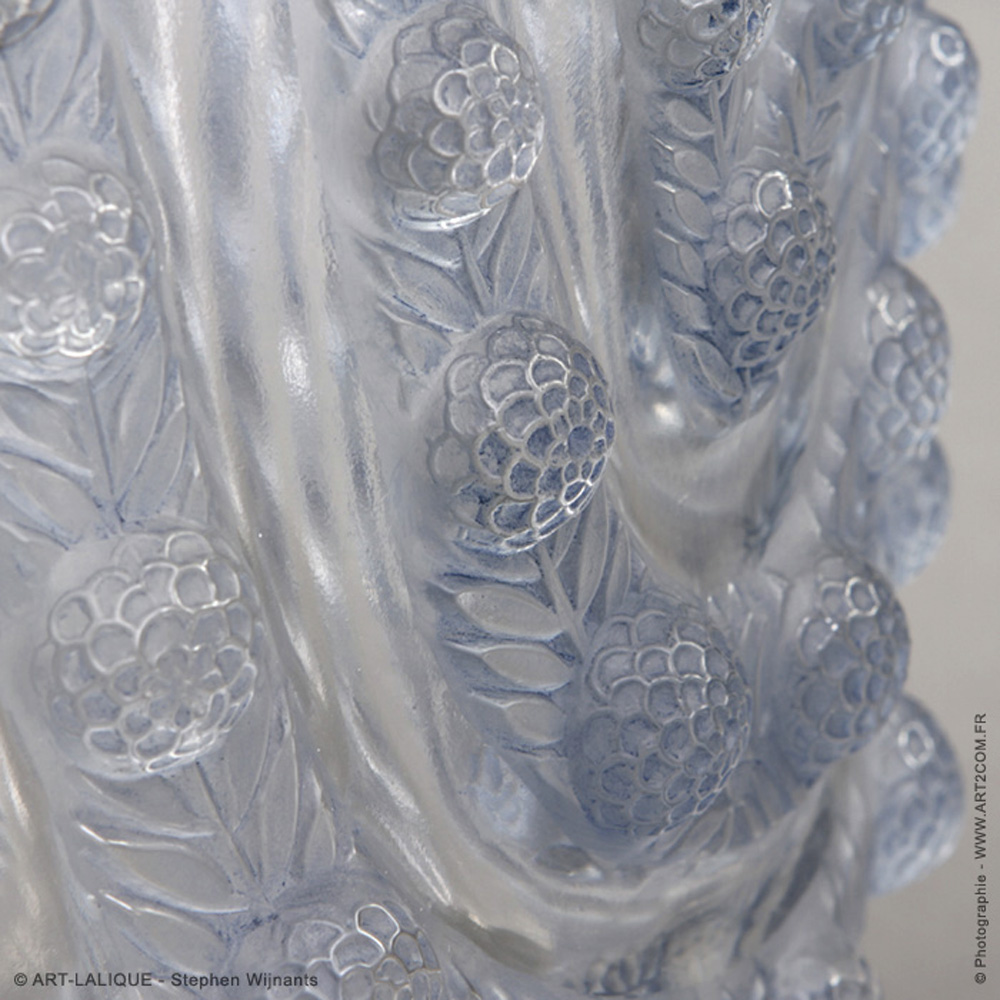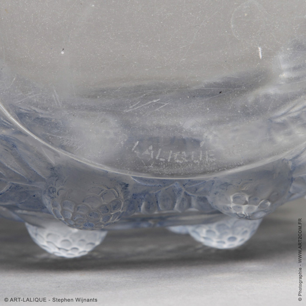 Verre blanc - Patine bleue. Référence : Félix Marcilhac, catalogue raisonné de l'oeuvre de verre de R.Lalique, éd. de l'Amateur Paris, 1994, p. 466