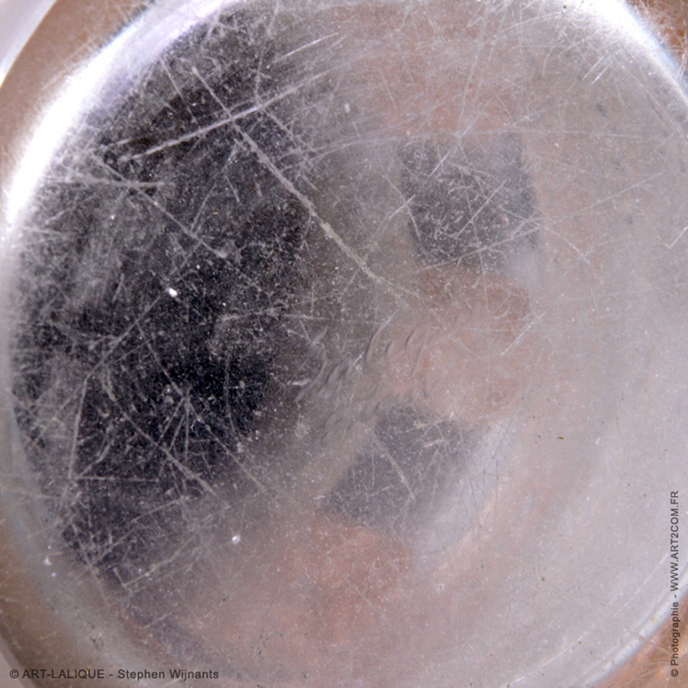 Verre blanc - Patine Sienne. Référence : Félix Marcilhac, catalogue raisonné de l'oeuvre de verre de R.Lalique, éd. de l'Amateur Paris, 1994, p.466