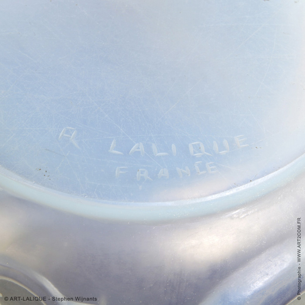 Verre opalescent. Référence : Félix Marcilhac, catalogue raisonné de l'oeuvre de verre de R.Lalique, éd. de l'Amateur Paris, 1994, p. 438