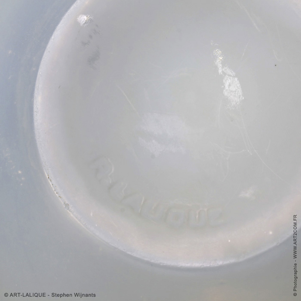 Verre opalescent - Patine bleue. Référence : Félix Marcilhac, catalogue raisonné de l'oeuvre de verre de R.Lalique, éd. de l'Amateur Paris, 1994, p. 435