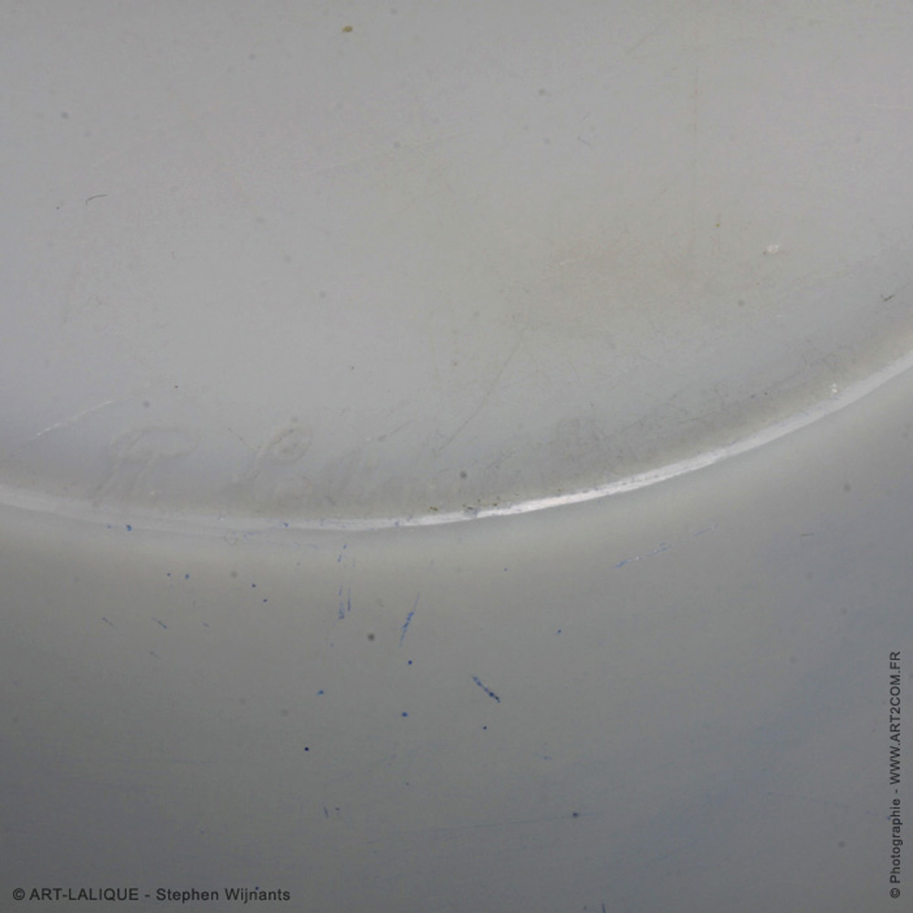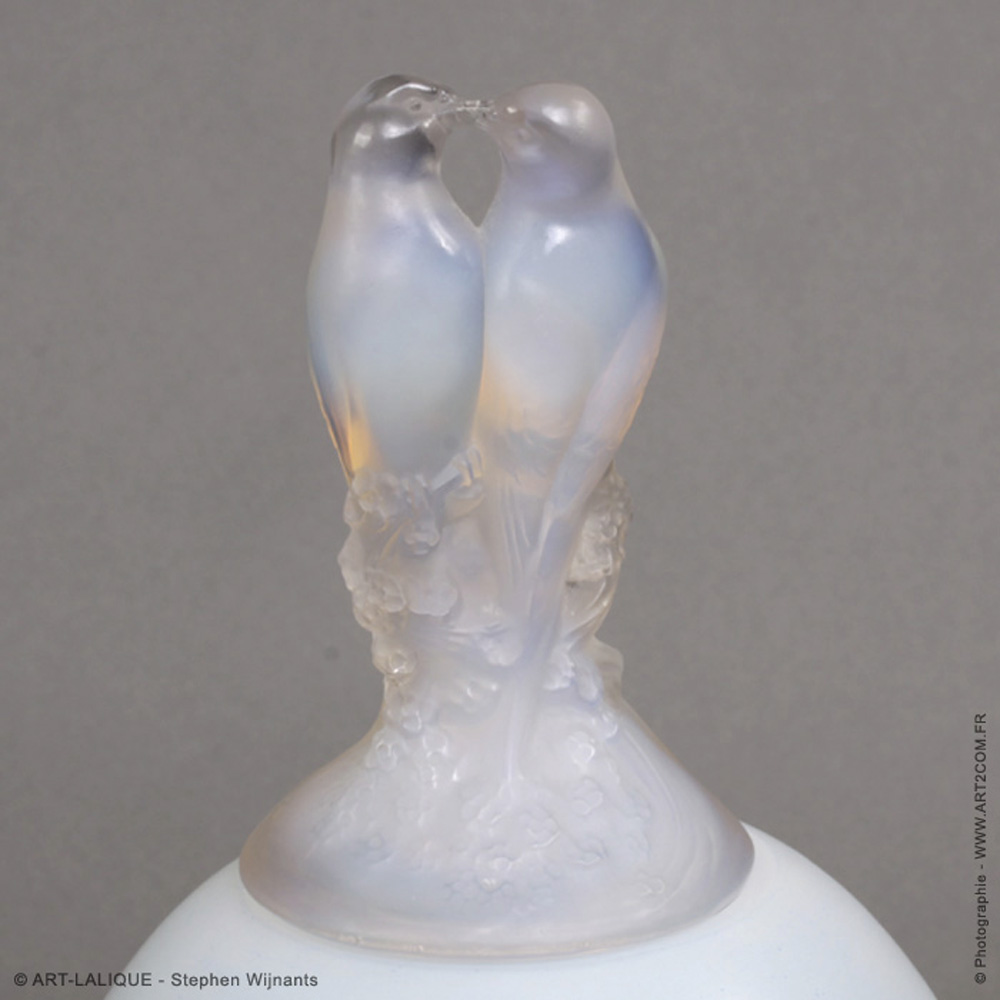 Verre opalescent. Avec un bouchon. Référence : Félix Marcilhac, catalogue raisonné de l'oeuvre de verre de R.Lalique, éd. de l'Amateur Paris, 1994, p. 431