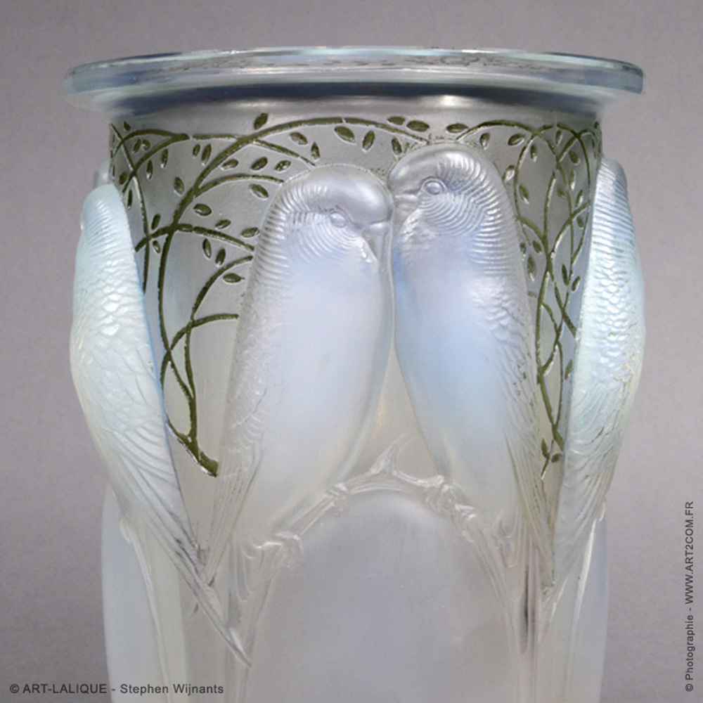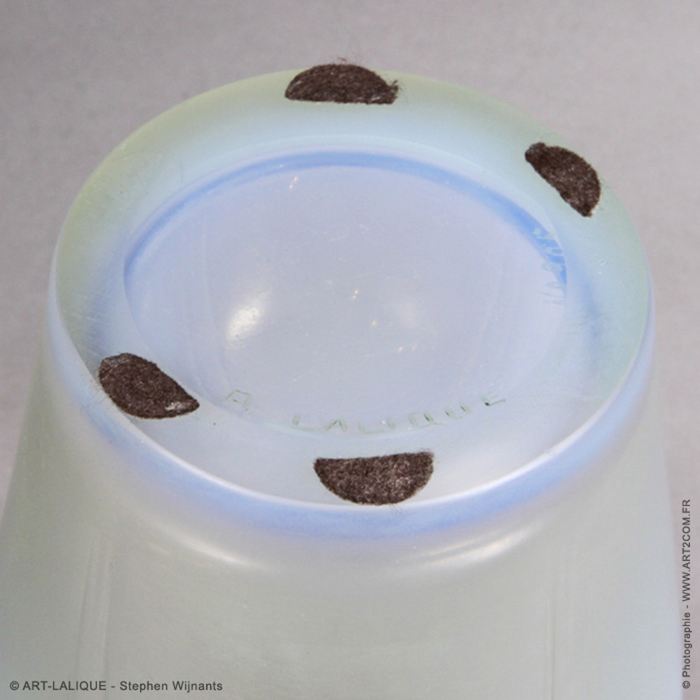 Verre blanc - Patine verte. Référence : Félix Marcilhac, catalogue raisonné de l'oeuvre de verre de R.Lalique, éd. de l'Amateur Paris, 1994, p.418