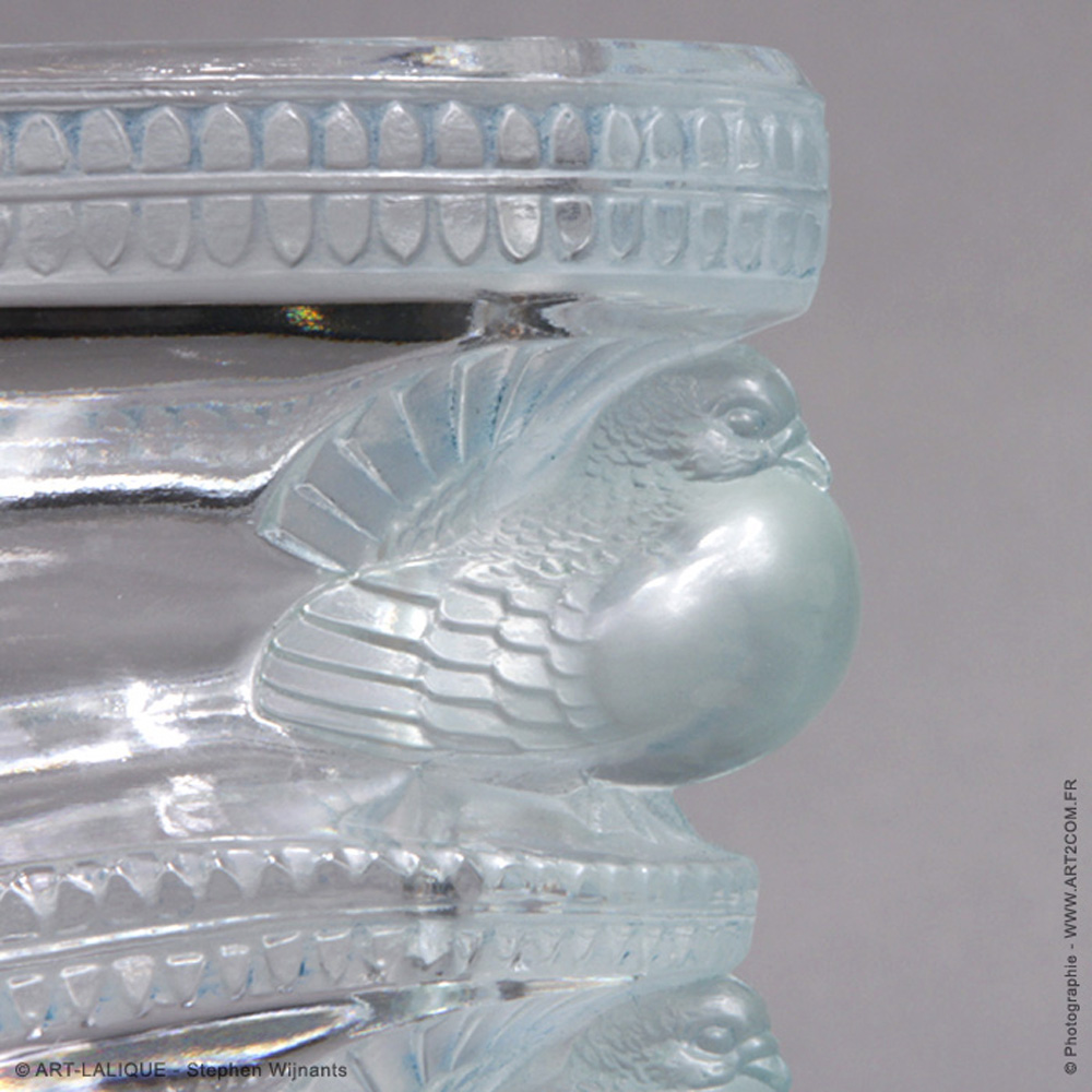 Verre blanc - Patine bleue. Référence : Félix Marcilhac, catalogue raisonné de l'oeuvre de verre de R.Lalique, éd. de l'Amateur Paris, 1994, p.471