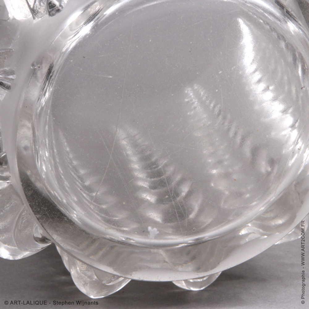 Verre blanc satiné. Référence : Félix Marcilhac, catalogue raisonné de l'oeuvre de verre de R.Lalique, éd. de l'Amateur Paris, 1994, p.463