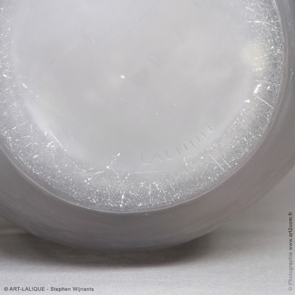 Verre blanc - Patine grise. Référence : Félix Marcilhac, catalogue raisonné de l'oeuvre de verre de R.Lalique, éd. de l'Amateur Paris, 1994, p.436