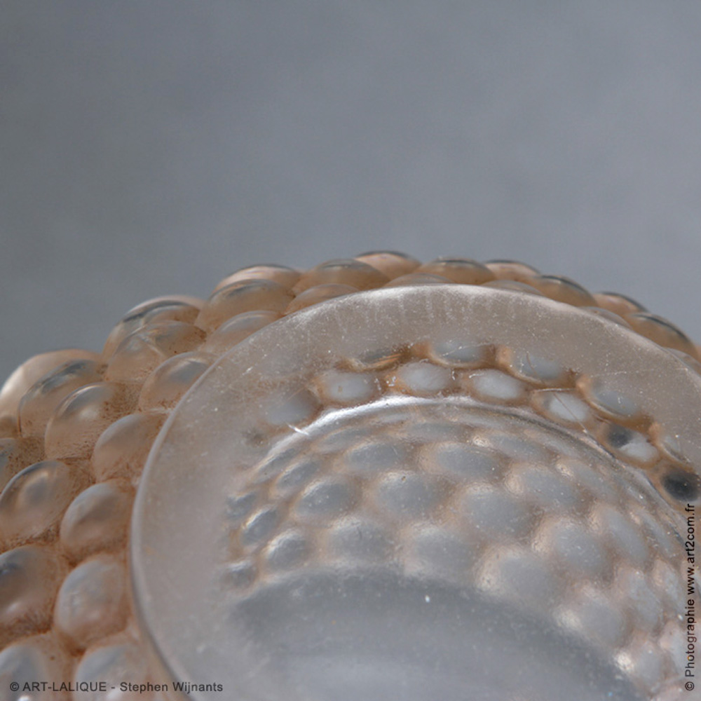 Verre blanc - Patine Sienne. Référence : Félix Marcilhac, catalogue raisonné de l'oeuvre de verre de R.Lalique, éd. de l'Amateur Paris, 1994, p.447