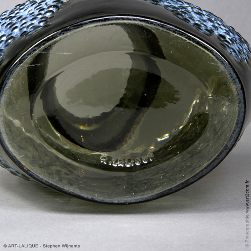 Verre topaze foncé patiné. Référence : Félix Marcilhac, catalogue raisonné de l'oeuvre de verre de R.Lalique, éd. de l'Amateur Paris, 1994, p.417