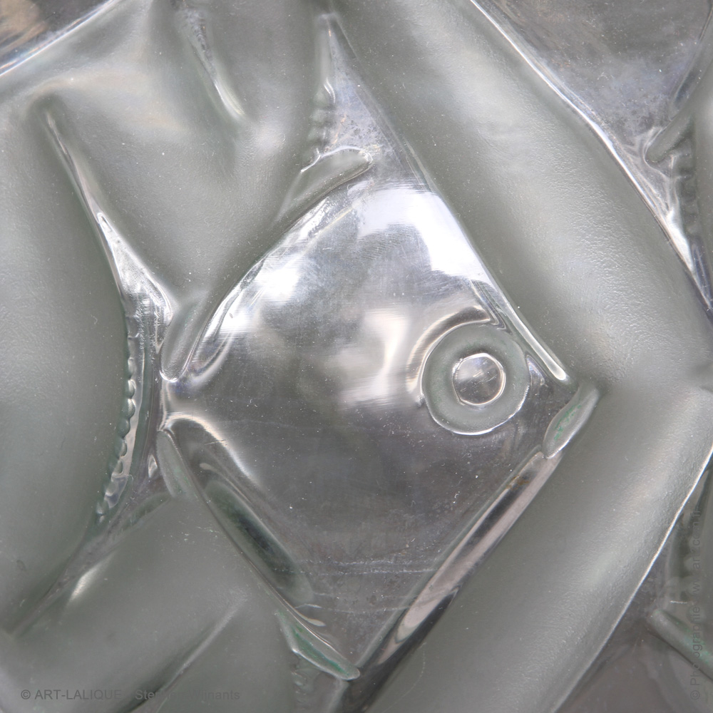 Verre blanc - Patine bleue. Référence : Félix Marcilhac, catalogue raisonné de l'oeuvre de verre de R.Lalique, éd. de l'Amateur Paris, 1994, p.441
